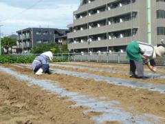 して行いました。どろんこ教室生徒が残念ながら種蒔き