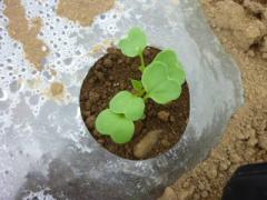大根の種を蒔いて丁度1週間、もう芽が出て、しっかり葉