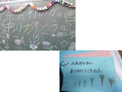 児童達は、元気村の皆さんのおかげです、と言ってくれましたが、先生方とみんなの熱心なとりくみの結果です。最後に、児童一人一人のメッセージカードをまとめたもの(クラス毎に)をいただき