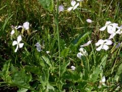 大根の花が咲いているのを発見!大根は全部収穫するので、農場で花を見ることはできませんでしたが、おそらく切れ端から成長し花を付けたと思われます。