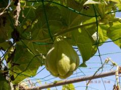休憩スペースのところには、今年は成長の勢いが弱く、実はつけないのかなと思われたハヤトウリがちゃんと実っていました。