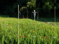 農場に運び、準備してあった設置場所に、見本として作製したかかしと合わせ、10体設置した。