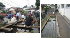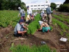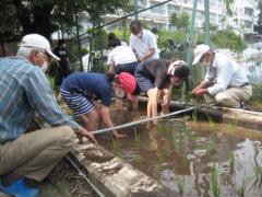 初音ケ丘小学校5年生3クラス児童の田植え支援を行った。