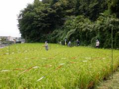 農場にはトンボが飛び交い、稲穂はキラキラ光る防鳥テープとかかしに見守られすくすくと成長していました。