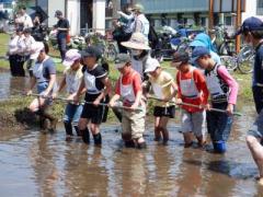『楽しかった人?』の質問に沢山の手が上がっていました。青木副村長より次回のどろんこ教室、代かきについて説明後解散。