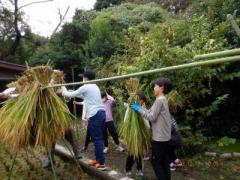 そして、今日欠席の児童が後日体験する分を残し、終了となりました。その後は、稲架作り、はせ掛けまで児童も一緒に行いました。
