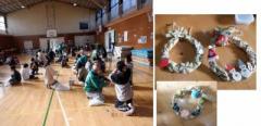 そして、整列してご挨拶、その後三村指導者から今日の三つ編みリースの作り方を説明しました。 『三つ編みしたことある人?!』と聞くと、多くの手があがったことにもビックリ。(低学年の児童が多かったから)