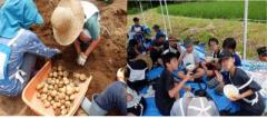 ③ジャガイモの収穫:各グループで決められた畝で収穫スタート。すぐに沢山のイモが出てきた生徒や、かなり掘ってやっと見つけた生徒も。みんな一生懸命に収穫しました!