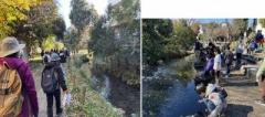 ③観察開始:今日のコースは鶴ヶ峰公園入口広場~帷子川親水緑道~帷子川分水池~田原橋公園(休憩)~学校橋~ほどがや元気村農場。風がなく日向は暖かい気持ちの良い歩きやすい天気でした。生徒たちは川面や林で野鳥を見つけては資料と見比べながら観察をしました。ハクセキレイ・キセキレイ・メジロ・ムクドリ、ヒヨドリ・スズメ・カルガモ・マガモ、コガモ・カワセミ・コサギ・アオサギ・オオバン・イソシギ、ホシハジロ・カワウ等沢山の鳥をみることも出来ました。また、カワセミの採餌シーンをみることも出来て生徒や実行委員も喜んでいました。中には双眼鏡やカメラ持参で熱心に観察する生徒や大人より詳しい生徒もいました。