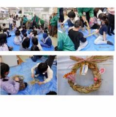 今年もキッズ川島のわら細工支援に入りました。昨年は体育館でしたが、今回体育館が使用できないためキッズの部屋にブルーシートを敷き行いました。
