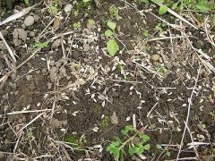 稲刈りが終わった上段の三村さん田んぼには、もみ殻が散乱していました。すずめさん達!お米だけでなく害虫も沢山食べましょう。そして、絶滅種にならないでね。