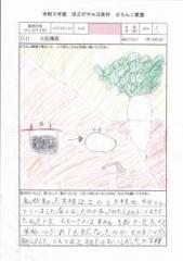 大根をほってみて、初めて二またの大根をとって、家で食べたらとてもおいしかったです。大根をほるときとても重かったです。