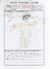 写真拡大 ぼくは、かかしをつくって思ったことははじめみんなで、けいかくするときに、とりがこわがるようにしようといって、かんせいしたときに、言ったことはとりじゃなく、人がこわがるといいました。