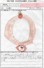 わらがかたくて、ひもで練習したときよりもむずかしかったです。!?でも、きれいにかざり付けができたので、よくできました。
