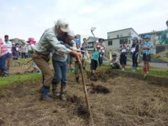 「1年間お疲れ様でした。今日が最後の作業です。じゃが芋を植えます。みんなが去年7月に試食した