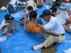 (区役所から西戸職員も参加、一緒に案山子を作ります。)