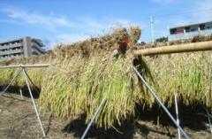 各グループ、稲を刈る、刈った稲をはさ掛けするために運ぶ、と二手に分かれスタートです。