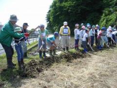 みんなの力で、割り当てられた範囲の田おこしが、