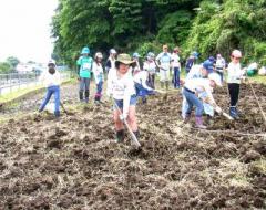 ほとんどの生徒が、クワに触るのは初めてです。
