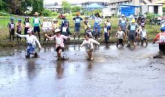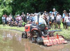 前回のどろんこ教室で「田おこし」をした田んぼに
