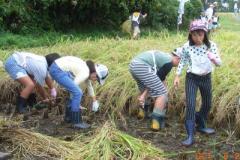 みんなが刈った稲を実行委員が束ねていきます。