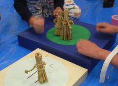 今日のどろんこ教室は、わら細工です。