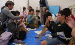 今日のどろんこ教室は、わら細工です。