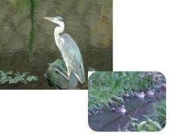 マガモ、コガモ、アオサギ、コサギ、イソシギ、ハクセキレイ、カワウ、