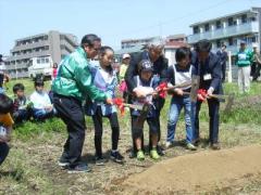 開講式の後元気村農場に移動し「鍬入れ式」です。