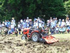 トラクターでの田おこし見学