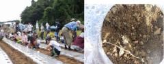 大根畑には、穴の開いたビニールシート(マルチ)が張ってあります。この穴の土を少し取り除き