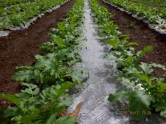 でも、この後『間引き』をし、マルチの穴に1本の大根だけを残す作業が待っています。そうすると、少しの間、この緑の葉っぱも減りますね。