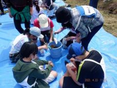 第1回目のどろんこ教室は開講式と農場で鍬入れ式、お米の種まきです。