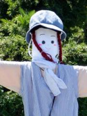かかし作りでは、これにはこの色、ここはこれ!とコーディネートを楽しみながら服選び。腕(用の竹)に袖を通してから胴体にしっかり固定させて出来上がり。毛糸で作った髪は個性が発揮され顔
