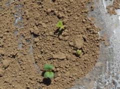 今日種まき後4日目、早くも芽がでそろって、かわいい葉っぱが見られました。