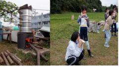 周りの糠層(ぬかそう)をとるため、玄米をペットボトルに入れて棒でつきました。