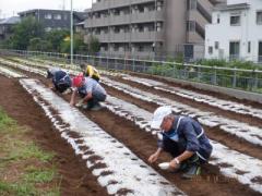 その後土をかけますが、土が湿っていて固まっているので手のひらでくずしながらそっとかけましょう!