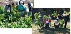 黄、緑グループは元気村農場に行き、大根の収穫です。