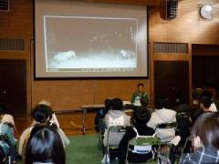 講師の緑グループリーダー田邉実行委員は、長い期間農場の隅々まで観察し、農場に生息する植物や生き物を写真におさめてきました。農場にカメラを設置し、なかなか見られない時間帯の様子も見てきました。