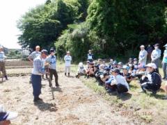 使う道具は3本鍬といって、先がフォークのように分かれているもの。使い方は三村先生が教えてくれました。みんなケガのないように!
