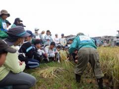そしてさっそく自分達が田植えをしたところの田んぼで稲刈り開始。