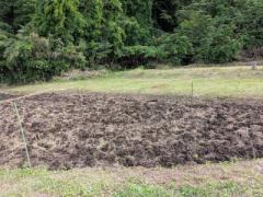 次回の代かきの時は、ここに水がたまっている中で、このデコボコの土の塊を足でこわし、平らな土になるようにします。