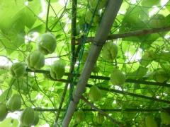 稲刈りの日(10月10日)はまだ実をつけ始めたばかりだったハヤトウリ、今日は見事なまでに大きな実を沢山つけていて、今日の元気村の主役のようでした。まさに別名センナリ(千成)ウリと言われることが納得できました。まだ小さな実もいっぱいついているので、もうしばらく楽しめそうです。