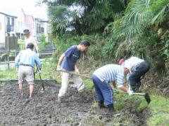 今回も二手に分かれて作業をしました。田んぼの水漏れはモグラのしわざ?