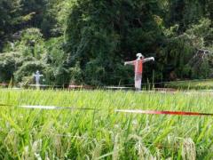 案山子達も暑さに負けず、見守ってくれています。もうすぐ9月、田んぼはこれから段々黄金色に変わっていきます。昨年のような台風が来ないことを祈り、次回、9月5日(土)実行委員会開催を確認し、解散となりました。