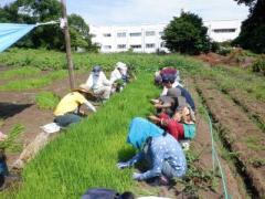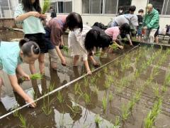 《記事》初音が丘小学校5年生3クラス児童(約90名)の田植え支援を行った。