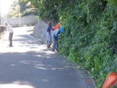 元気村農場前の道路の清掃。前回8月24日同様道路にはみ出している蔓性雑草の刈り取り、落ち葉の清掃を中心に行った。