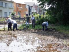 3.実行委員:角材引きによる田んぼの土ならし・後片付け・ミーティング