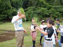 三村指導者より今日の田植えの方法について実演を交え説明がありました。