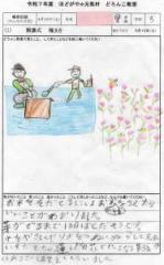 なりました。重くてうでがいたかったけども、ずうとやっていたかったです。カエルがたくさんいて、自然の豊かさを感じました。